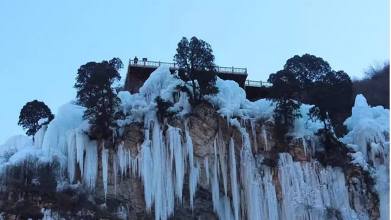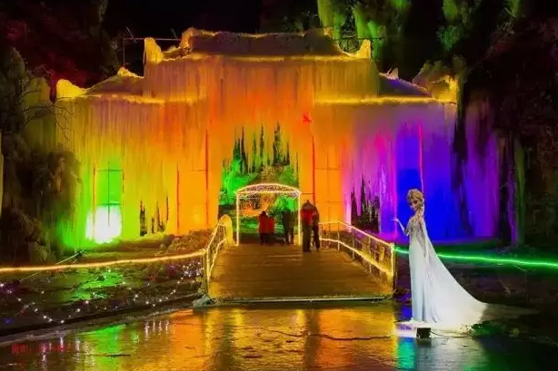 看这扇通往冰雪世界的大门,目光有没有被立刻锁住?垂直而下的百米冰瀑,蔚为壮观!抬头仰望,布置在山上的灯恰似满天繁星!
