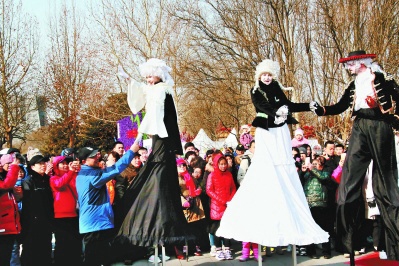 昨天,在朝阳公园举办的北京朝阳国际风情节“洋庙会”上,来自俄罗斯、希腊、比利时、西班牙和意大利等十个国家的艺术家们上演了精彩的文艺节目,与游客“零距离”互动,共享欢乐吉祥年。