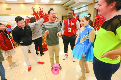 春节期间,西城区第二文化馆的文艺工作者走进北京语言大学,与留学生们一起度过欢乐中国年。