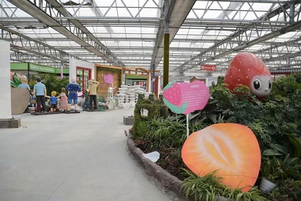 农事体验乐园位于草莓博览园东区北侧的22栋日光温室,占地面积约10000㎡,该区主要规划为草莓、蔬菜种植科技展示并开展相关的农事体验活动,在这里游客不仅可以观赏到草莓、蔬菜的现代化栽培模式及品种,亲自参与到农耕中,还可以了解到物联网的应用技术,欣赏到农业带来的美感。