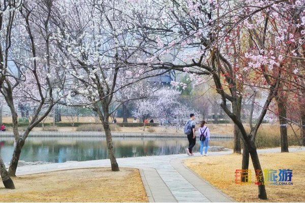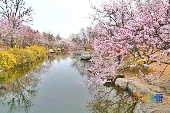 除了“山桃花溪”,四月盛放的碧桃也不容错过。另外还有辽梅山杏、玉兰、海棠也将次第开放。