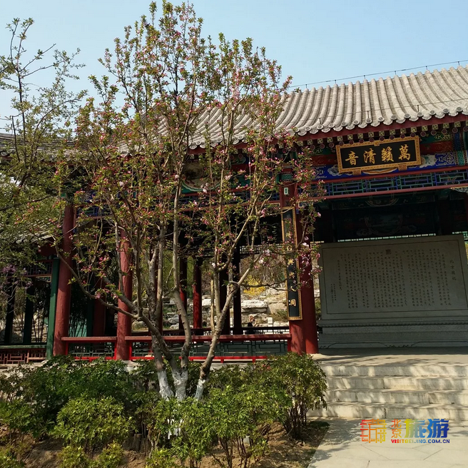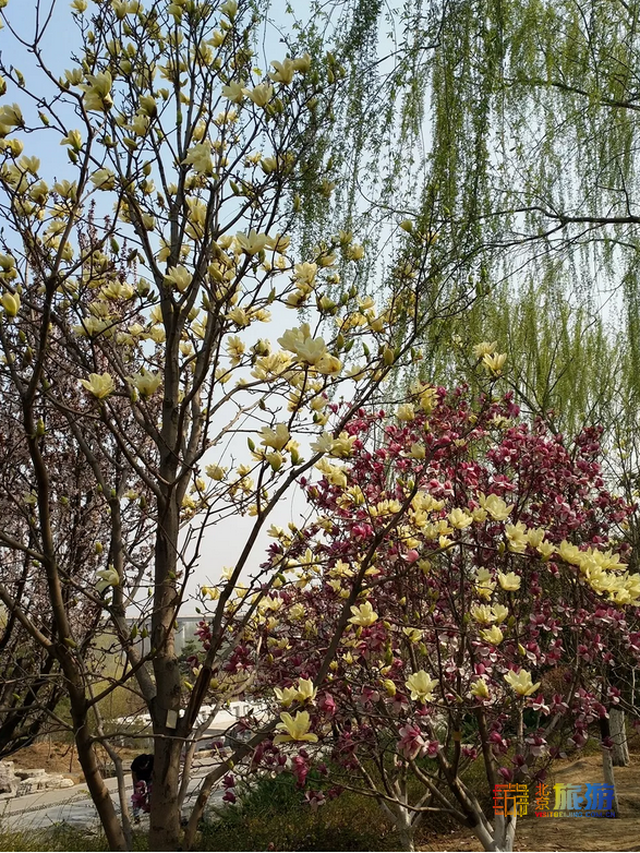 在“燕台大观”这个观景台的后面,是一处可以媲美三山五园的园林。门口的玉兰,已经是末期,而海棠花,正开得灿烂。