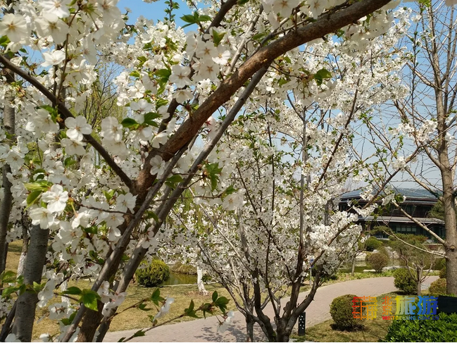 在忆江南景点的南门外,有一大片的樱花。当有风吹过的时候,樱花片片飞舞,就像一场樱花雨。