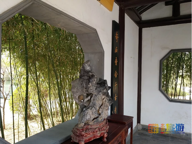 进入园林之后,迎面而来的就是一方水池,沿着走廊前行,一路上假山怪石不断。三三两两的花草树木,也正是一年当中最好的时候。