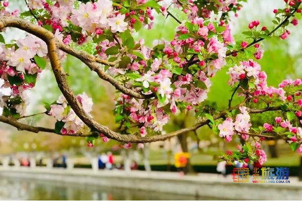要说到北京的赏海棠地,就不能不提元大都遗址公园。这里是长达9公里的狭长带状公园,横跨朝阳和海淀两个区,拥有北京最大的海棠林。海棠林分布在小月河两岸,每年四月,这里花开两岸,也因此拥有一个富有诗意的名字:海棠花溪。