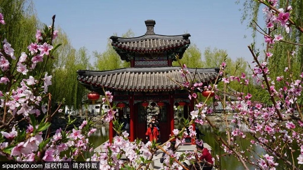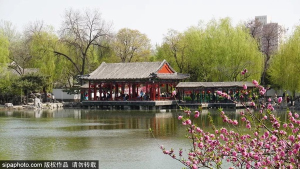 大观园当中种植了许多的花草树木,今年北京的春天来得早,许多花儿也比往年开放得更早些。且不说这里的桃花烂漫、海棠娇艳,单说这个时候,春风吹拂,桃红柳绿,映衬着亭台楼阁,更是一幅红楼花卷。