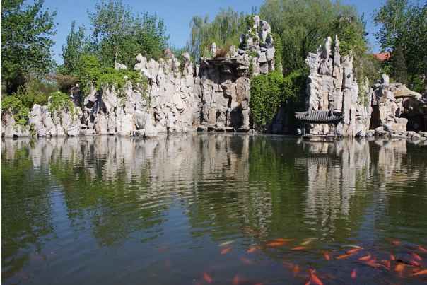 这里只算水上面积就有800亩,比什刹海、后海和积水潭的总和还大,水里还养着一群小锦鲤。去什么什刹海后海?来这里划船玩水才是恣意。里面还有不少亭台楼阁和假山,移步换景,风光不同。