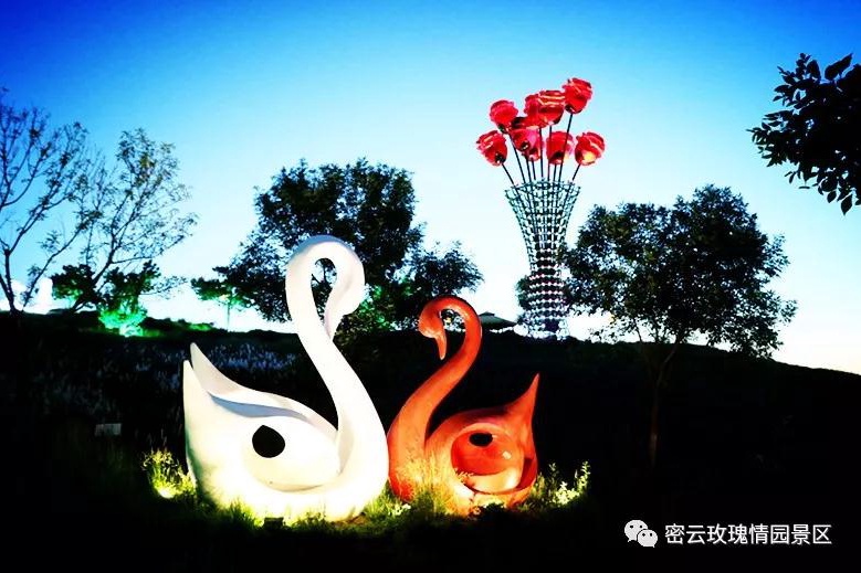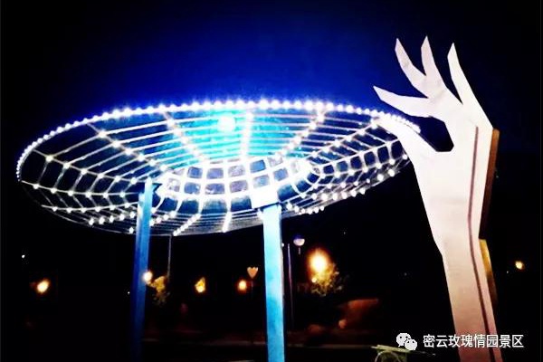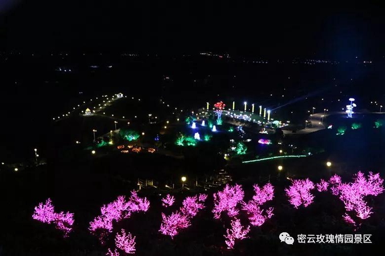 玫瑰情园夜景惊艳密云的夜,遥望星空,看见青山,闻到花香。