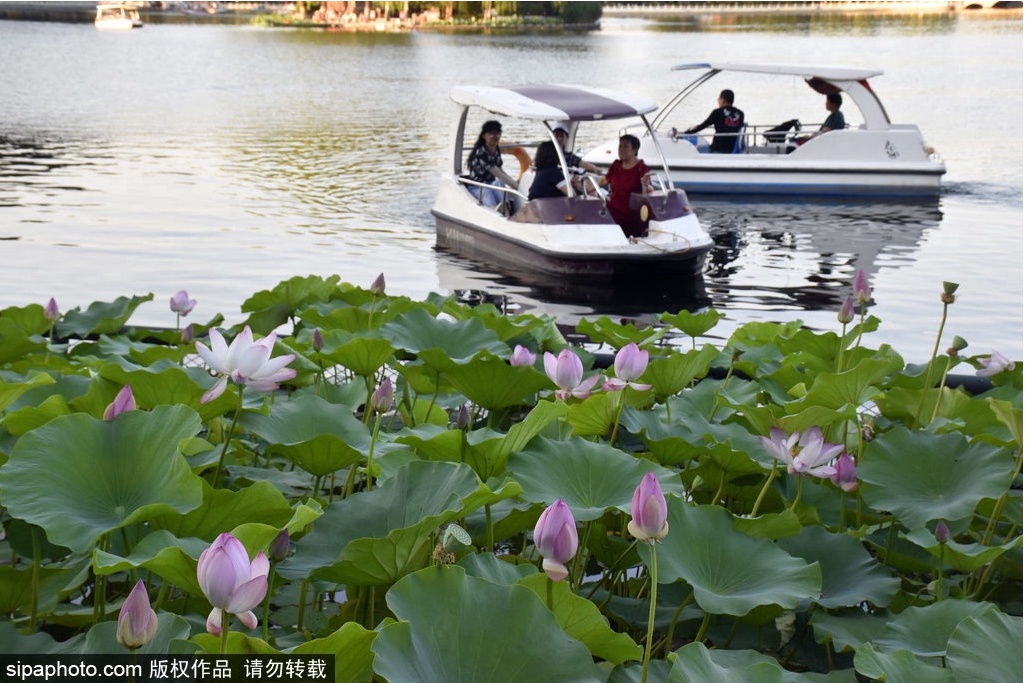 炎热的夏日,水波光相映,四周游廊曲折,怎么少得了湖上泛舟的惬意~