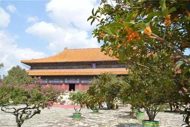 步入景区,随着金秋微凉的清风,远远的就飘来了一缕缕淡淡的桂花香,气味怡人。从祾恩门到祾恩殿,过内红门到明楼,道路两侧一盆盆绽放的桂花树,为这座古老雄伟的金丝楠木大殿增添了无限的生机。