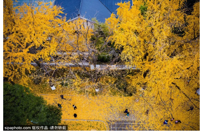 在北京秋天的各种颜色当中,最醒目的,就是红色与金色了。红色,是红叶,到了深秋染红一片天,金色,是银杏,大街小巷都铺满金色。