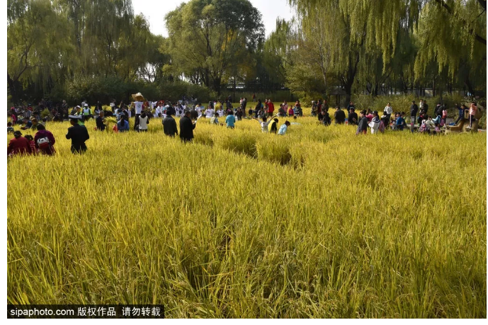 如今,海淀公园开辟了一片稻田,每年的十月中旬都会举行“京稻收获节”,收获节期间,稻花摇曳,金穗飘香,人们挥动镰刀,体验劳动的艰辛和收获的快乐。