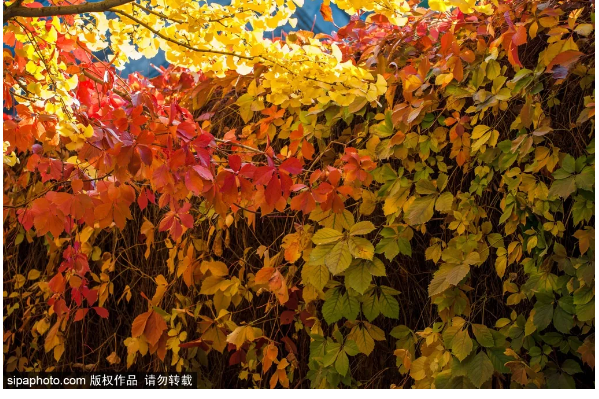 水是这里重要的美景,但这里的色彩也是让人难忘的绚丽,现在,爬山虎已经变红了,那颜色艳丽又娇艳,给假山,给矮墙都添上一抹秋日的色彩。