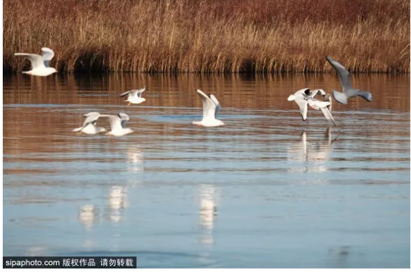 深秋的野鸭湖显得更加静谧与空旷,芦花吐絮,漫天飞扬。芦苇荡映衬在蓝天白云下,时而有飞鸟展翅翱翔,满眼的金黄,看得人身心舒畅。