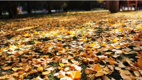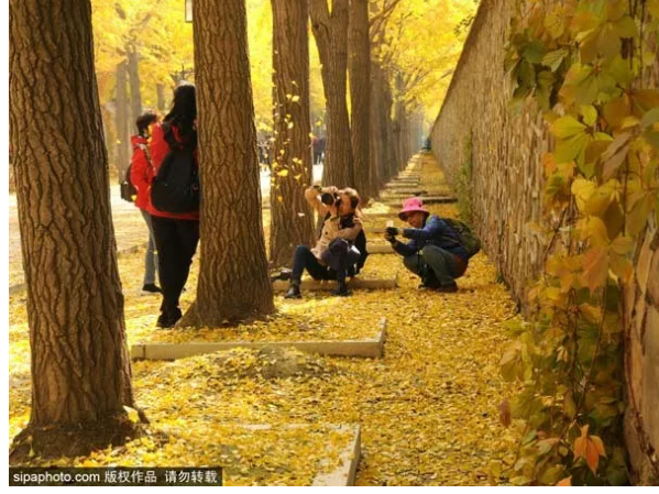 除了头顶的一片金黄,地上的落叶也密密层层,美丽秋色无死角。