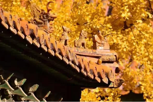 一砖一瓦,一草一木,都不知不觉地侵染了秋天的色彩,碧瓦飞甍,雕梁画栋,有一种穿越数百年的厚重与静美。