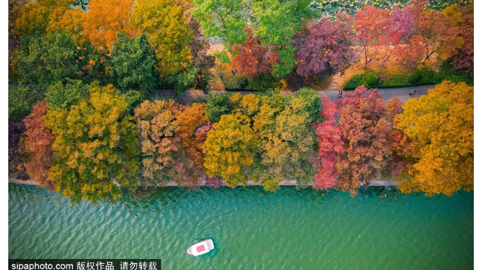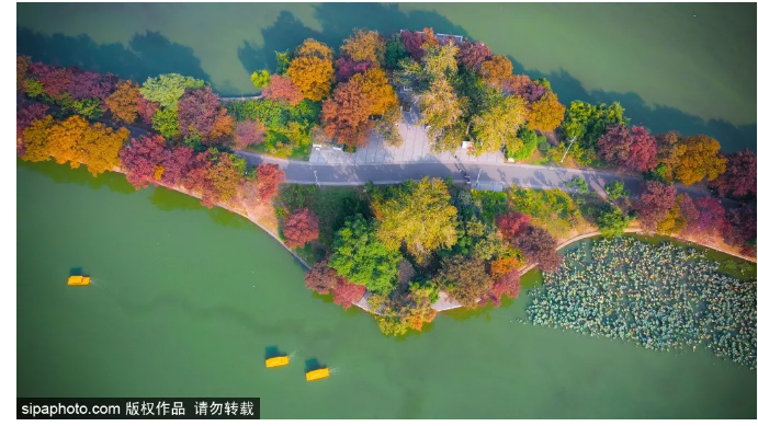 玄武湖分作五洲(环洲、樱洲、菱洲、梁洲、翠洲),洲洲堤桥相通,浑然一体,处处有山有水~