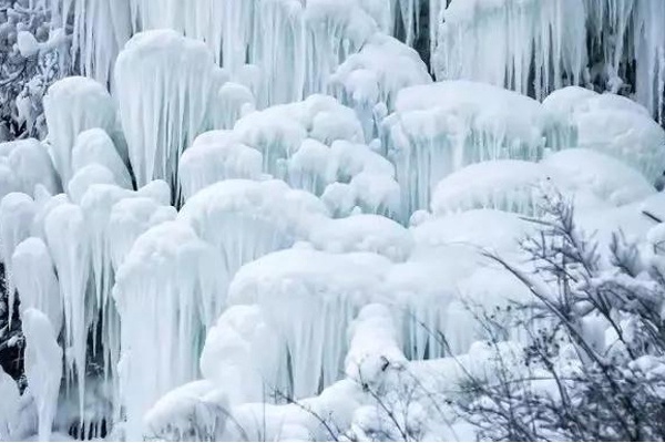 那些大自然自己创造的冰雪奇观,那些瀑布、水滴自己雕画的生动图案,争相展现自己的美艳,冰瀑虽不会涌动飞沫,但却是别有一番生趣。