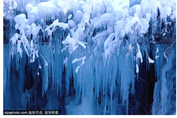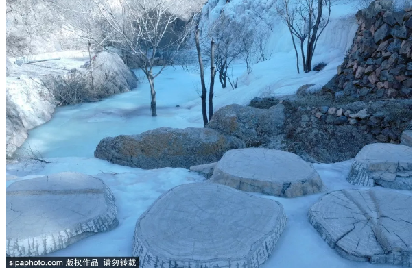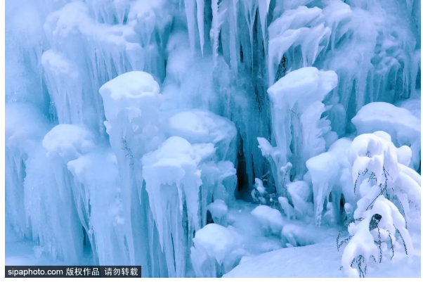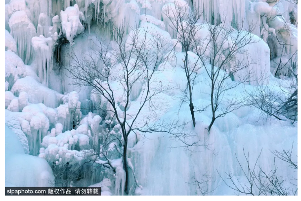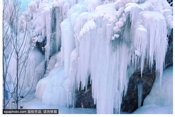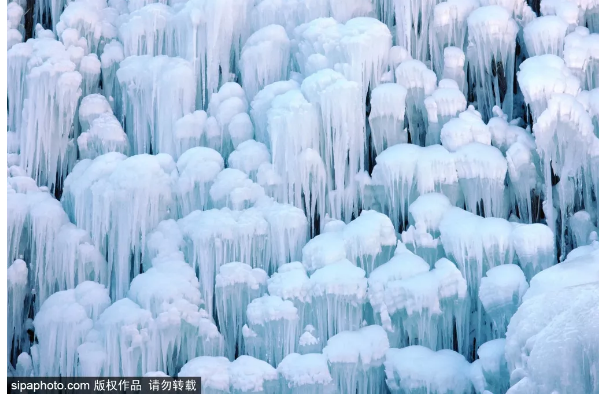 夏日里泉水叮咚的山谷,被一条条冰柱点缀;往日流水潺潺的河溪,凝结成洁白的“玉带”。再加上人工的精心雕琢,浏览路线可谓一步一景,让人频频驻足。