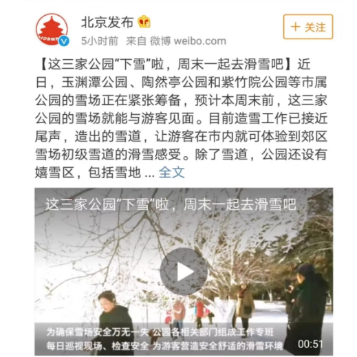 天呐,北京又双叒叕下!雪!了!这几天去过玉渊潭公园、陶然亭公园、紫竹院公园的小伙伴们会发现,公园里“下雪”了,而且还是“鹅毛大雪”,放眼望去,白茫茫一片。原来是这些市属公园的雪场正式开园了!上周末,这三家公园的雪场正式向市民开放。