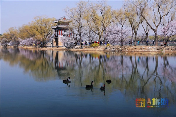 【北京旅游网报道】三月春风吹,桃花惹人醉。颐和园西堤的山桃盛开,岸边的柳条抽出了新芽。微风吹过,柳条随风摆动,犹如翩翩起舞的少女。相机定格的瞬间就是一幅春天的画卷。( 摄影:徐珍)