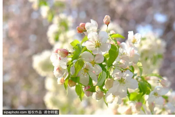 公园北土城一段内植有海棠,这里还取了一个富有诗意的名字,叫做海棠花溪。