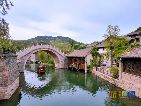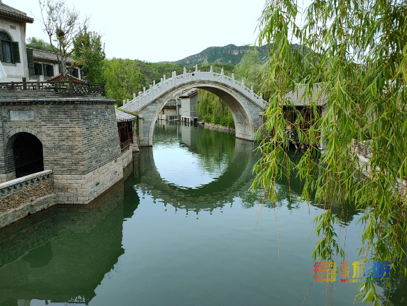 司马台长城分东西两侧,东侧有一凛冽刺骨的冷泉,数步之遥的西侧,却有滑润氤氲的温泉。两者汇入同一水域,世人称之为鸳鸯湖。古北水镇的水,便因鸳鸯湖而来。湖水环绕山间,有数座石桥横亘两岸。人在桥上走,影在画中行,给这个硬朗的北方山镇,平添了几分诗意,多了江南才会有的轻柔和婉约。