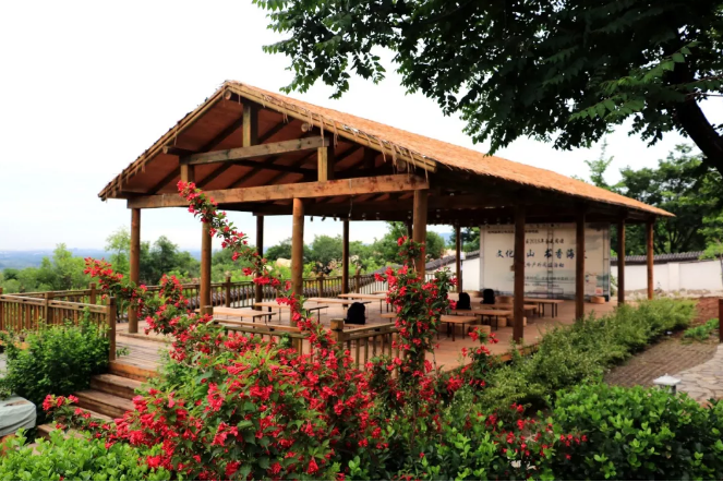 “登此山一半已是壶天,造绝顶千重尚多福地”,木门上的楹联道一番意境,一进小院儿,别有洞天,仿佛走进百花的怀抱。