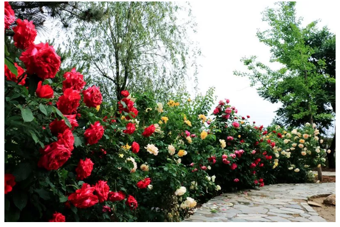 在明德草堂的旁边有条石板路,不宽不窄,刚好容两个人过,路旁载满了月季花。