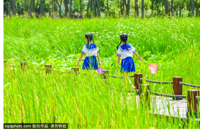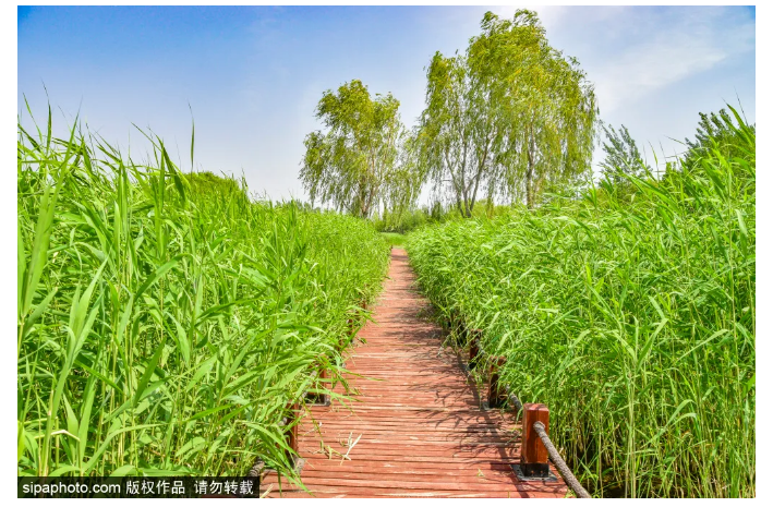 湿地栈道观也是公园一大特色,栈道全长600米,旁边搭配种植了各种水生植物,有的足有一人多高~