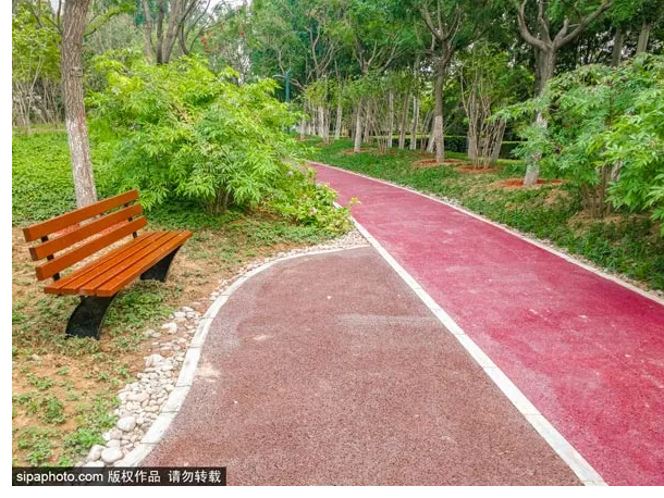 当记者途径喧闹的南五环来到公园,顿觉安静。微地形小上坡上,绿草和野花正随风摆动,蝴蝶、喜鹊相映成趣,橙色跑道如同彩练蜿蜒着伸向远方,登高望远,水面波光粼粼,倒映着蓝天白云,好一幅迷人的郊野画面。