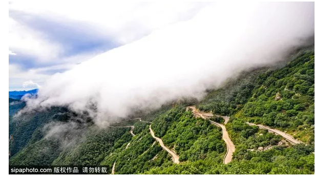 除了高山草甸,百花山另一奇特景观就是云海了,山巅云雾时而浓重,时而飘散,或翻或涌,或奔或泻,似是一幅水墨丹青画卷。