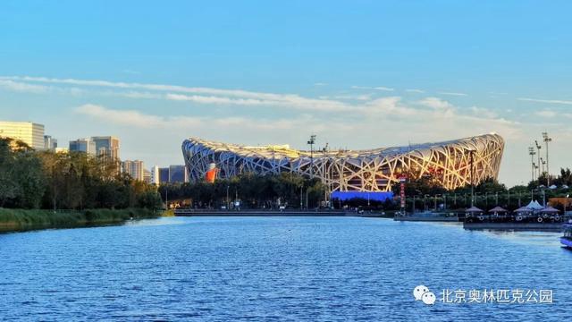 蓝天下,鸟巢边的湖水变得湛蓝湛蓝……