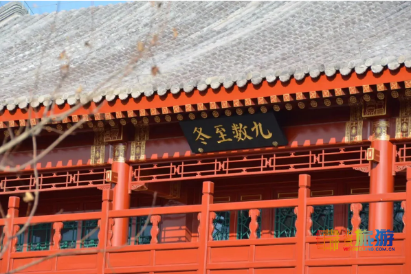 冬至数九景区以白皮松和梅花交互映衬,将冬至的习俗和景观融入影壁,体现冬至新三候“松梅韵、庭香含、水泉动 ”。