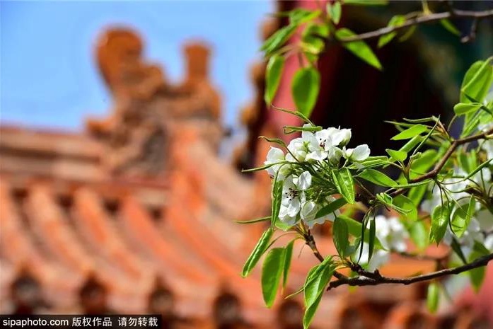 故宫的梨花白如雪,香气甜美,与雕梁画栋的古建筑相得益彰,承乾宫的梨花最有名。