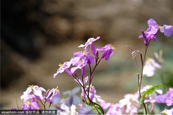 不少游人掏出手机,蹲下来拍摄随风摇曳的二月兰。