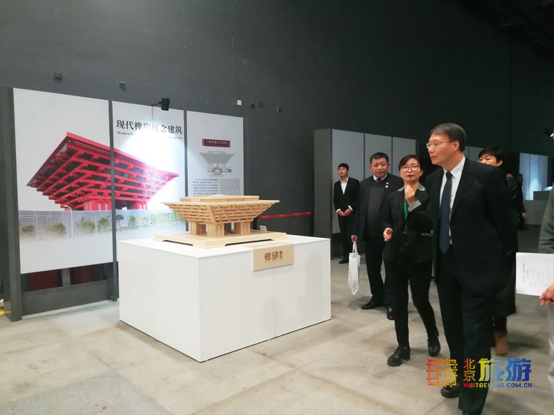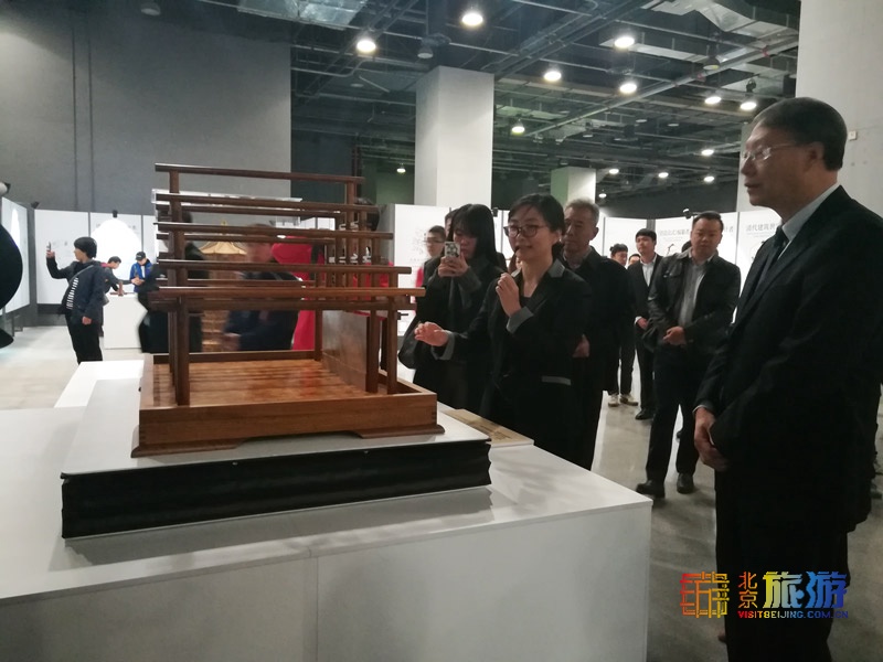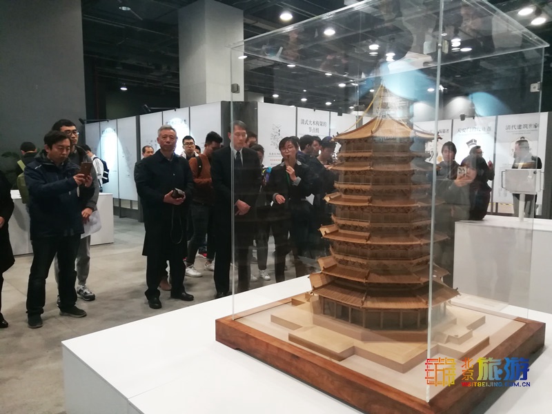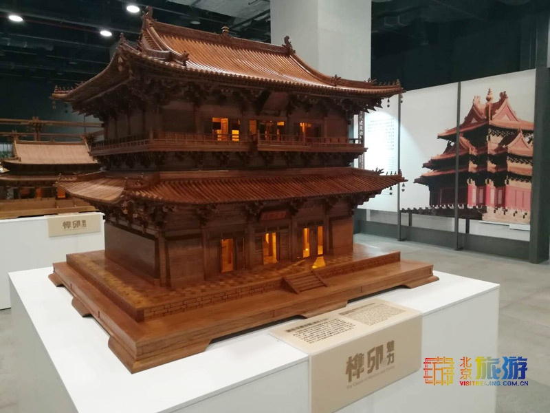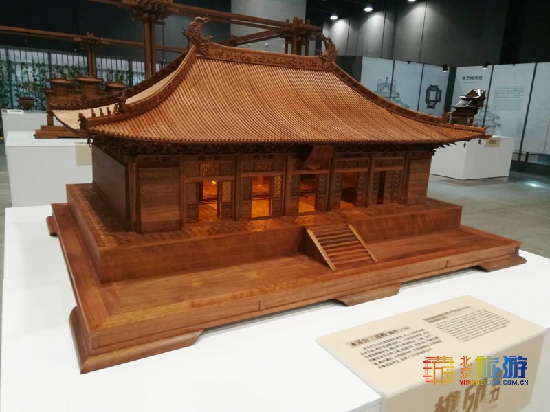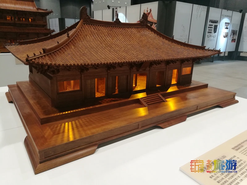 大厅里一排历代著名木结构建筑模型:中国现存规模最大、结构最复杂的唐代木构建筑——佛光寺大殿,中国现存最早的木结构楼阁式建筑——独乐寺观音阁,宋代建筑的代表作——晋祠圣母殿,乾隆皇帝为其母祝寿而建的雍和宫牌楼,她们有的历史已逾千年。