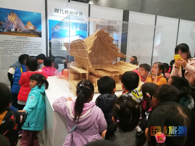 在“榫卯的魅力”主题展览,当然要让大家把榫卯玩个够。不同展区集中了不同的榫卯结构模型,都可以直接手动体验。