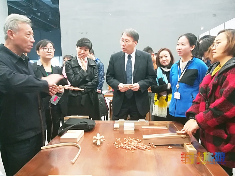 秦皇岛89岁的老人为此次展览免费捐赠的几十个“鲁班锁”就正在这个展览上展出。“还可以通关,升级。让孩子们从简单的玩起,玩到最后,是近百块木块拼在一起。”