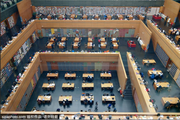 国家图书馆的建筑也非常有特色,各区域用玻璃进行分割,大厅采取了开放式设计,通透自然,拥有大家之气。坐电梯到顶层俯瞰整个大厅,直接上图感受一下视觉冲击。玻璃屋顶使整个图书馆光线充足,身处于阅览中庭的人们仿佛置身于大大的庭院。当阳光洒在地板上,这里便能满足你对图书馆的一切幻想。每年最炎热的七八月份,国图基本座无虚席,每个人都低头看书,做着自己的事,安静又安逸。