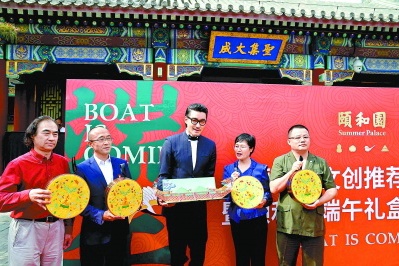 昨天,颐和园首次推出三款分别以“端午舟到”“游园赏景”和“大吉葫芦锦盒”为主题的端午文创礼盒,提前为游客游园增添端午节氛围。首发仪式上,演员胡兵被授予首位颐和园文创推荐官的称号。本报记者 吴镝摄