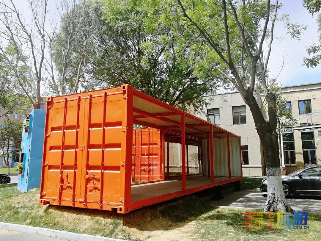 园区中有几处红砖厂房,周围还有钢铁装饰,建在水上的集装箱,为人们提供放松休闲的地方。