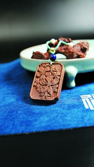 “合悦生香”手工香牌,本次共推出两种香型:古法木樨香和蝴蝶香。古法木樨香以桂花、檀香、沉香、金颜香、龙脑等天然植物香材调配而成;蝴蝶香则选用檀香、甘松、玄参、大黄、苍术、丁香、降真香、乳香等香材制作而成。香牌正面雕刻有吉祥寓意的百花纹样;背面以中式祥云为底纹,雕刻康熙御笔“福”字,寓意多子多财多福多寿。香牌主打绿色、健康、无添加概念,可做车挂、包挂。