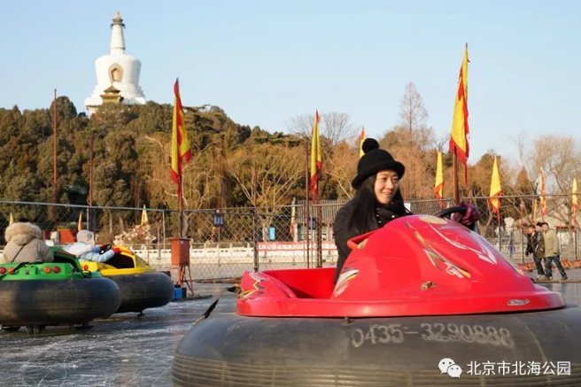 北海冰场位于公园南门的荷花湖,面积达到了一万五千平米,分为四个区域,即冰上自行车及冰车混合区、冰鞋区、碰碰车区和漂移车区。为满足广大市民、游客不同冰上游乐体验需求,冰场配备了种类丰富的娱乐设施,有卡通冰车、传统冰车、冰上自行车、冰上漂移车、冰上碰碰车、冰鞋。除了冰上碰碰车外,其余的传统冰上项目,当日购票入场后,均不限时无限畅玩。