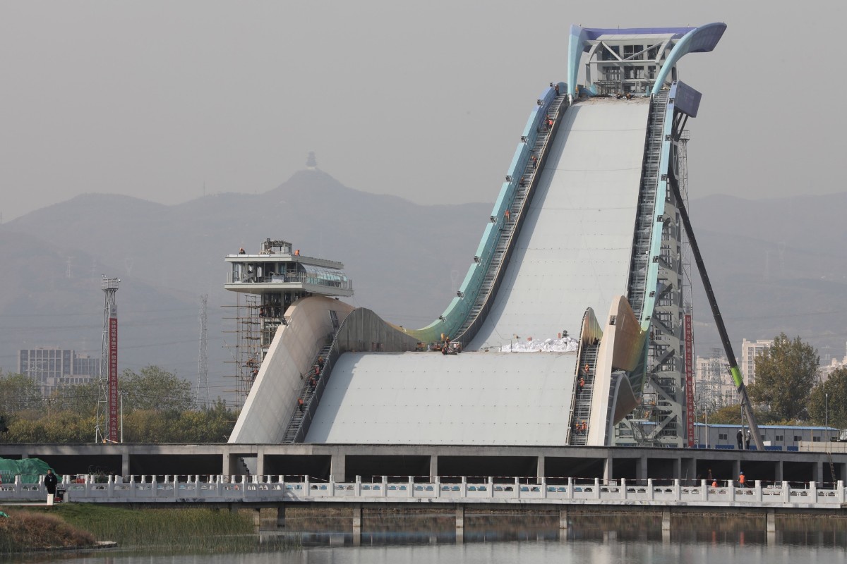 从2018年12月开工,到2019年10月31日建设完成,大跳台的建设只用了短短300多天。“现在主体结构完工工,现在已基本具备比赛条件,下一步将进行照明设施等工作。”王国勤表示。