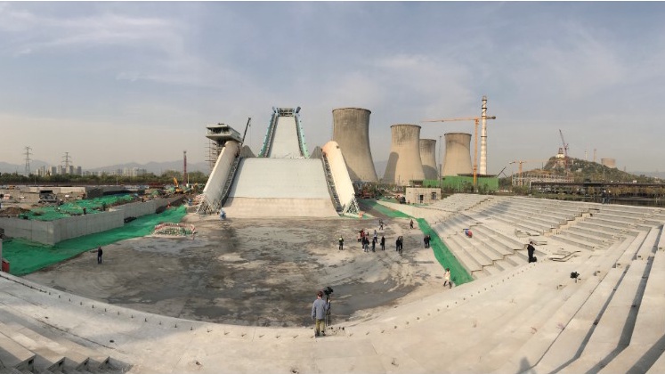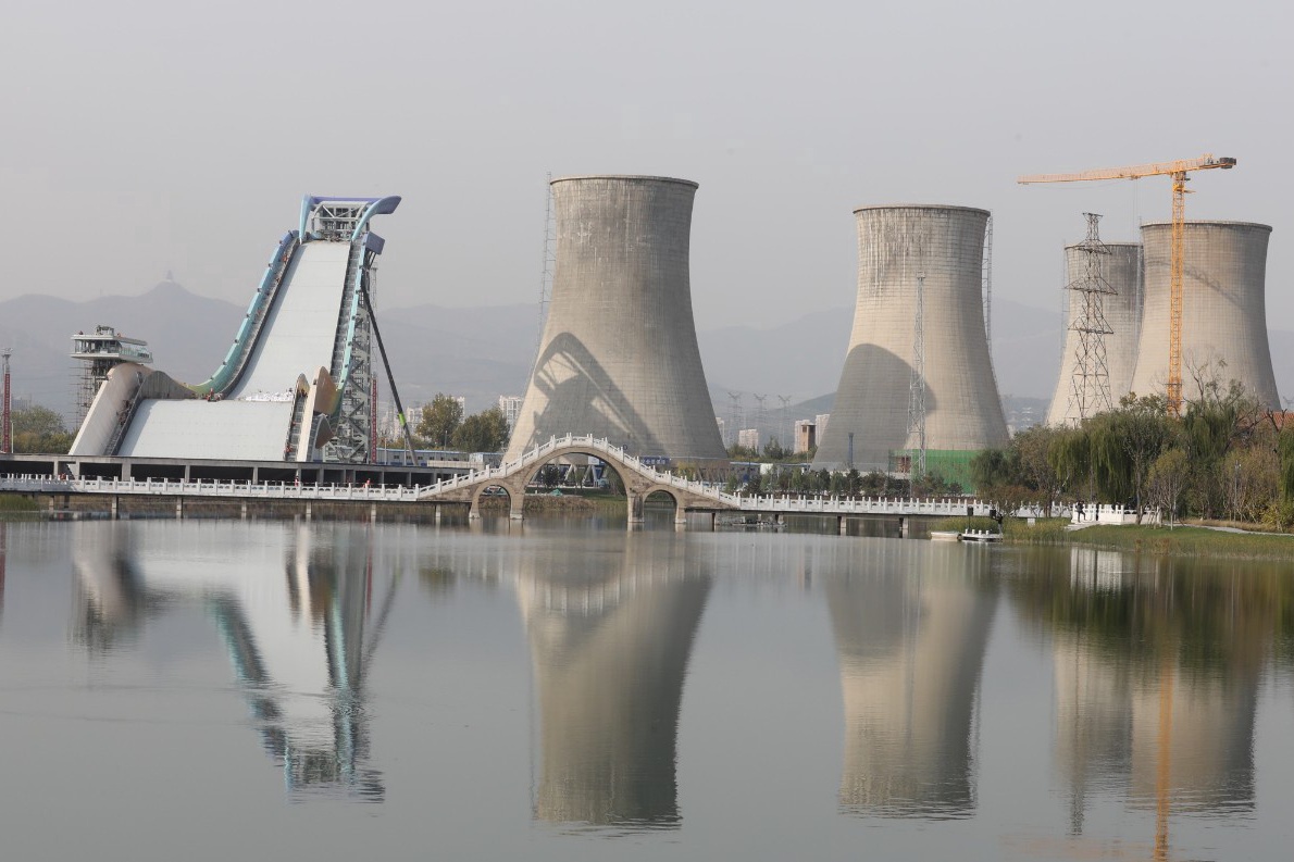 首钢滑雪大跳台中心场地由北向南还依次分布着原首钢发电主厂房、冷却塔及原首钢制氧厂厂房。