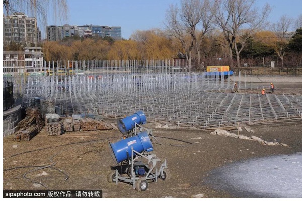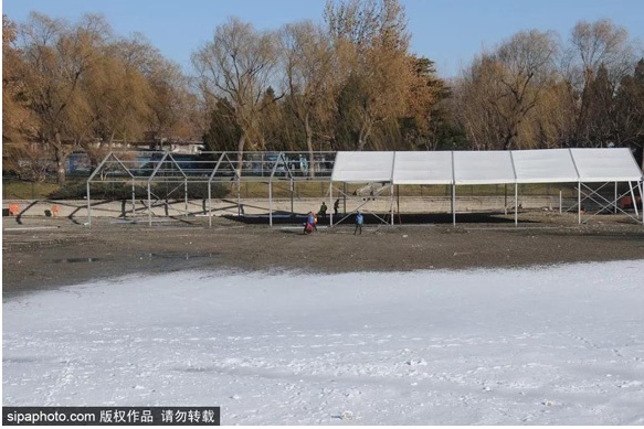 在玉渊潭公园,第十一届冰雪季活动的场地也正在紧张筹备当中,届时将开展运动休闲、亲子互动、雪地竞技、冰雪文化等休闲娱乐项目。冰雪季活动区域位于公园樱花园西侧小湖,面积8000余平方米。公园内造雪作业正在进行当中,场地内已被皑皑白雪覆盖。
