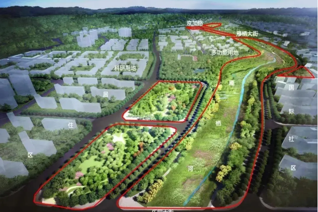 项目启动区内共两处块状绿地,一块位于京加路南侧、雁栖河东岸,面积约为8.6公顷,将打造“艺之林”主题公园。公园围绕生态雨水收集、生态科普展示、绿色户外健身等内容,用造型新颖的景观形式、多样的植物色彩,打造以绿色科普为主题的丛林生态艺术空间。另一地块位于乐园大街北侧、雁栖河西岸,面积约7.5公顷,将打造“栖之林”主题公园,有针对性设置小型足球、篮球和乒乓球等活动场地,满足周边居民运动需求,营造宜居生态空间。