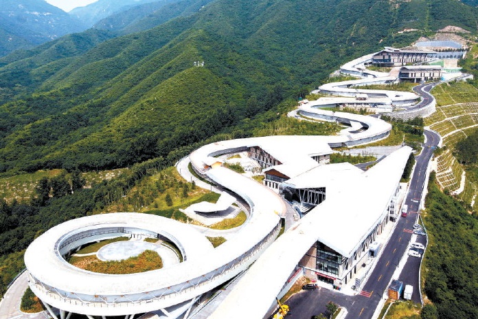 若想从高空领略国家高山滑雪中心竞赛场馆的风姿,就要通过索道上面的吊厢。从高空俯视,延庆赛区场馆群一览无余。