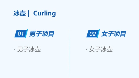 冰壶:又称掷冰壶、冰上溜石,是以队为单位在冰上进行的一种投掷性竞赛项目,被喻为冰上的“国际象棋”。冰壶比赛在两队之间进行,每队四人,两队轮流掷球,不仅需要使冰壶准确到达营垒的中心,同时让对方的冰壶远离圆心,最后以冰壶距离营垒圆心的远近决定胜负。比赛时每队出场4人,每人每局掷壶两次,壶投出后运动员可为运动的冰壶擦冰。双方按照一垒、二垒、三垒和四垒的顺序进行一对一的对抗比赛,两个队共投完16个壶为一局,最后一壶投完后,大本营内距中心近的壶的一方得分,比赛打10局,得分多者为胜。